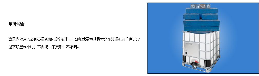 為了符合運載危險品的包裝容器的特殊規定,我們在本公司的測試設施上都對本產品進行檢漏、跌落測試、內部壓力測試、堆疊測試及振動試驗等性能測試項目,以確保值得信賴的高品質包裝容器。